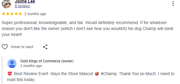 Super professional, knowledgeable, and fair. Would definitely recommend. If for whatever reason you don't like the owner (which I don't see how you wouldnt) his dog Champ will steal your heart!